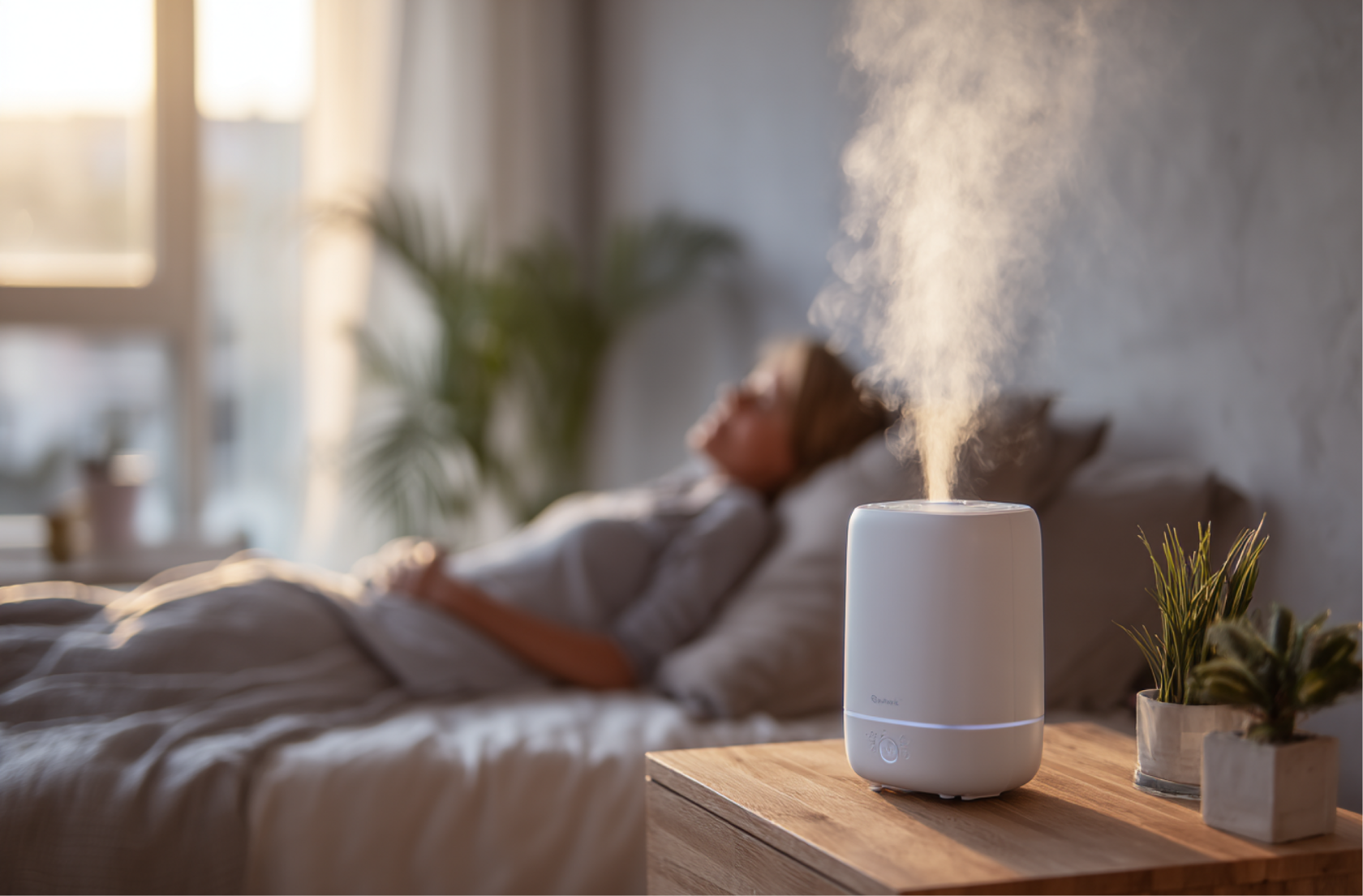 - Увлажнитель воздуха — главный гаджет зимы. Включите его в спальне. Нормальная влажность (40–50%) спасет вас от утренней сухости во рту и стянутости кожи.
